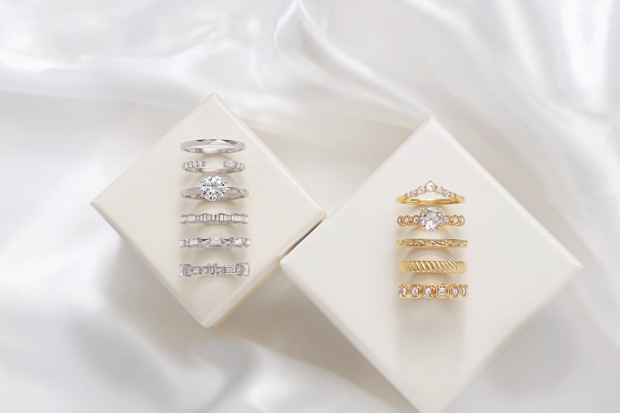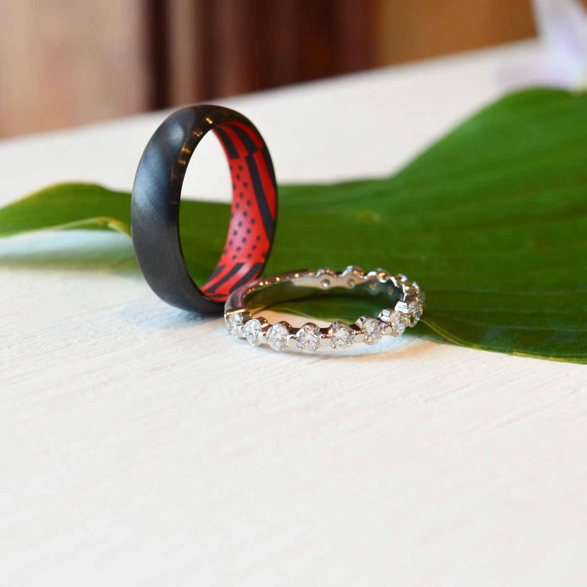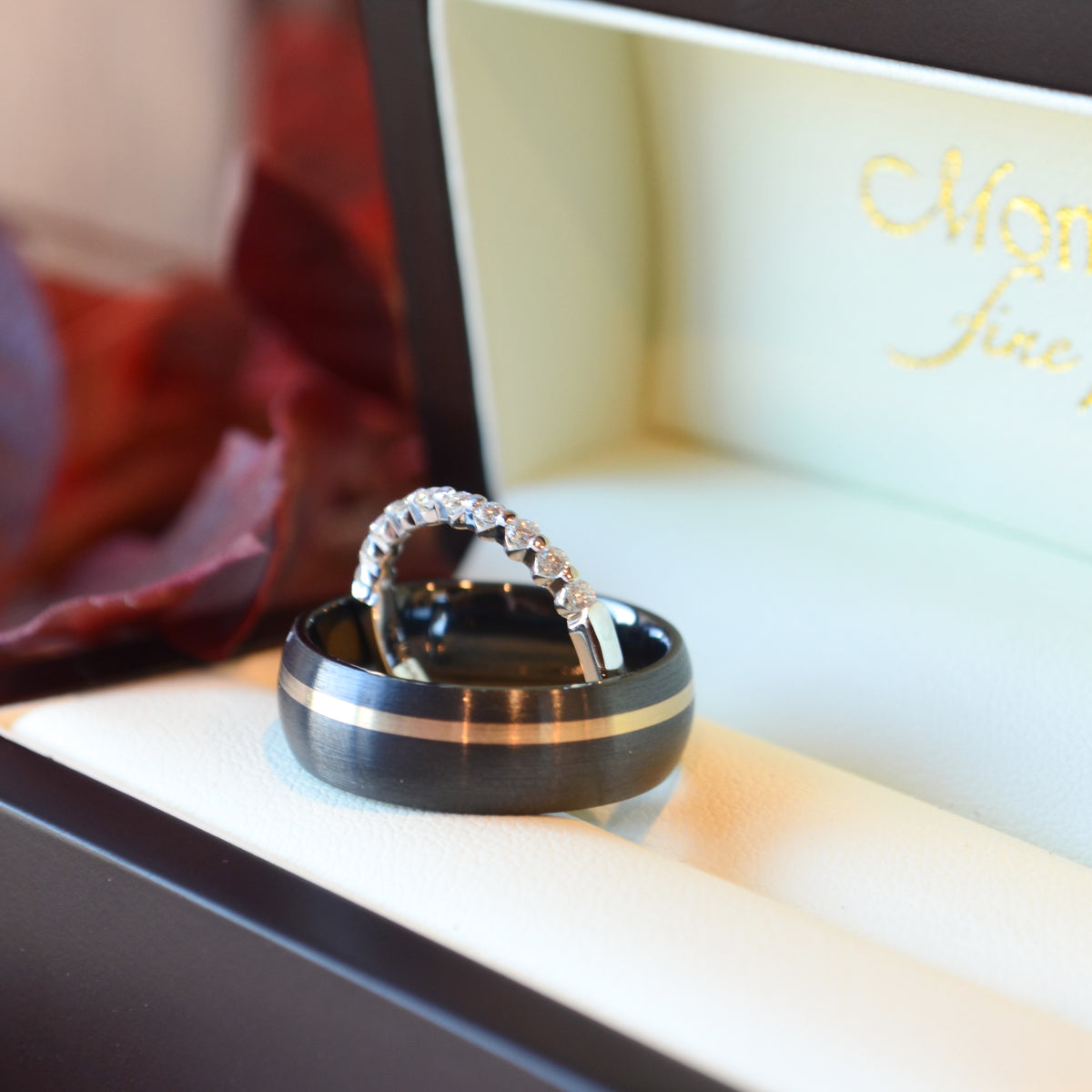 Find the perfect match to your engagement ring. Choose from many different styles to suite your lifestyle and to match your engagement ring. Diamonds, plain band, colored stones.