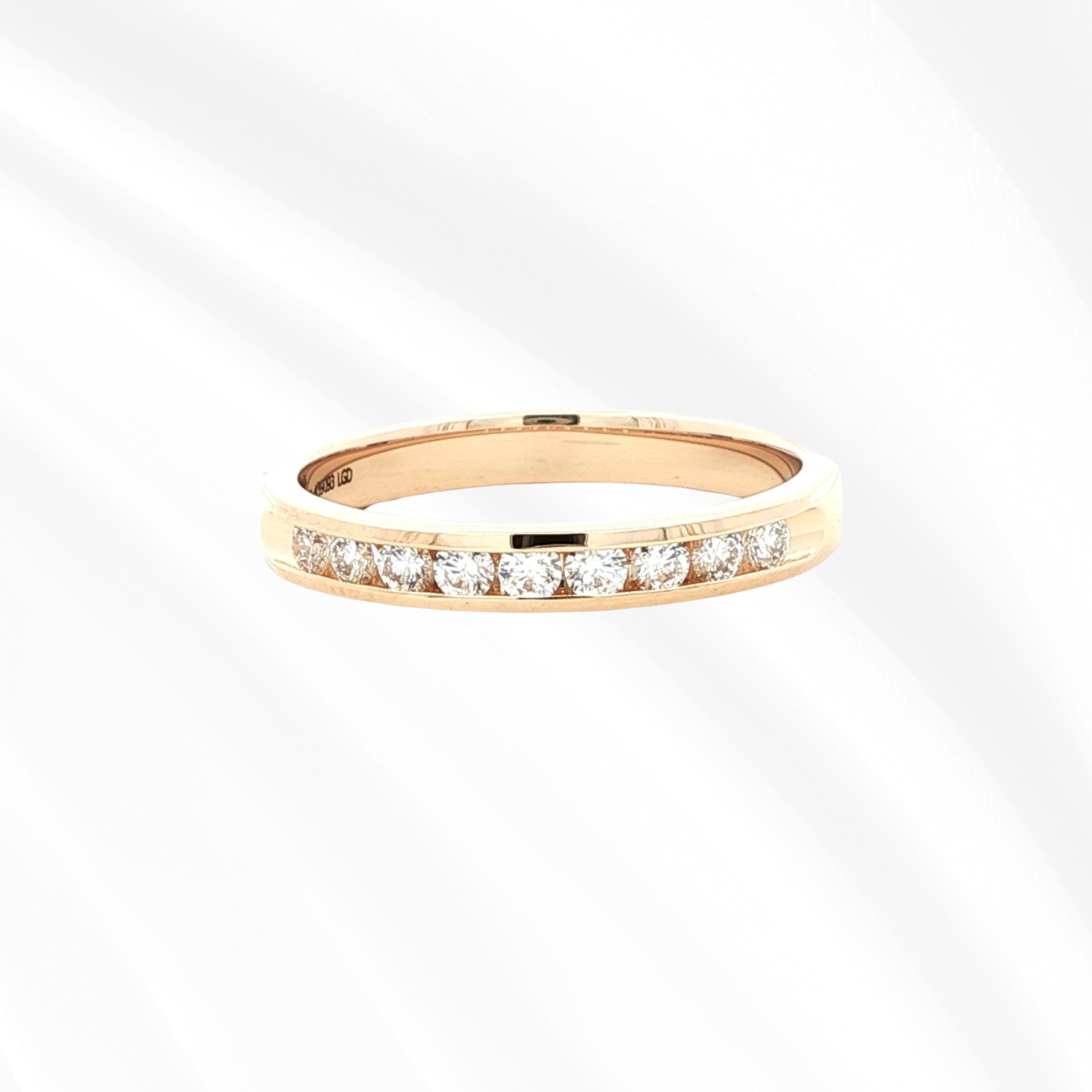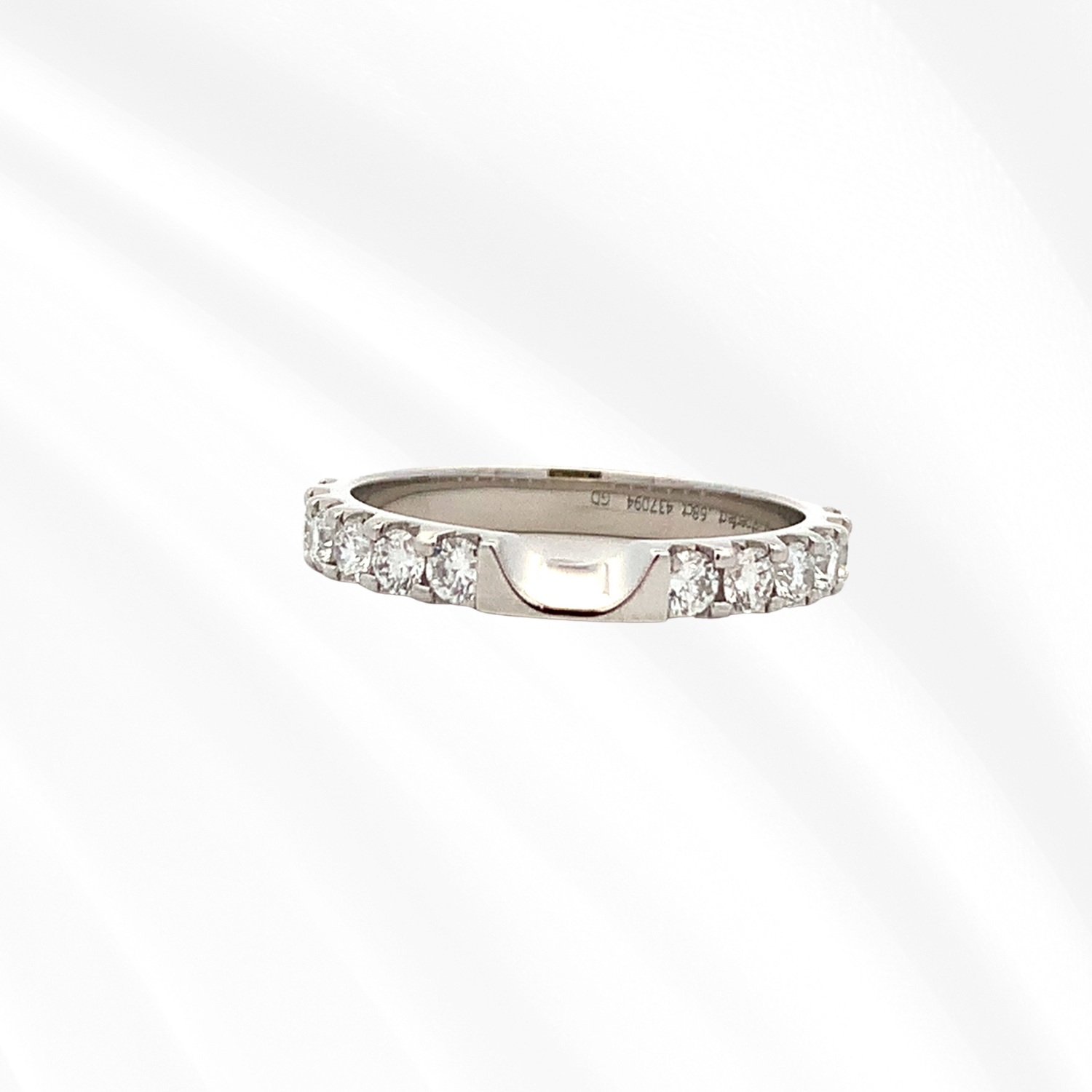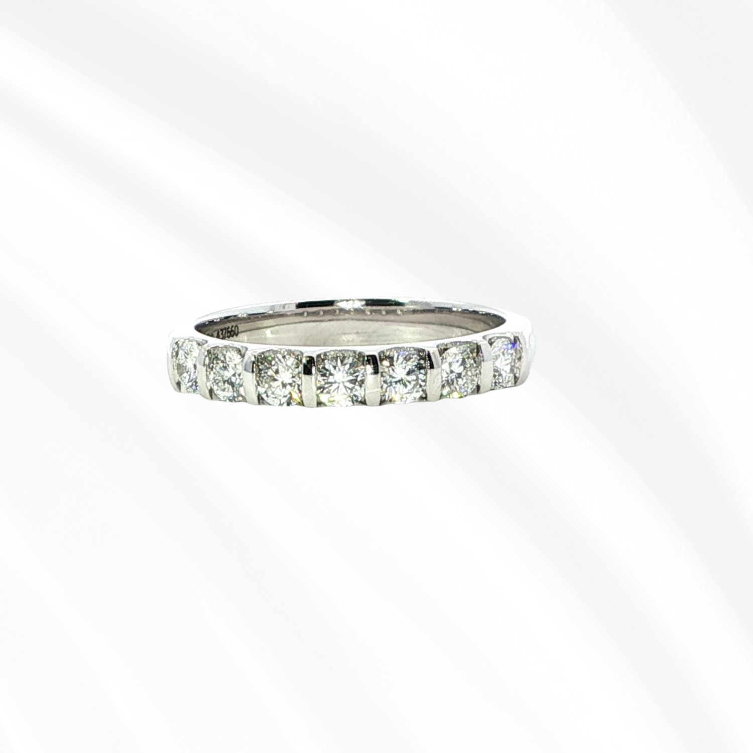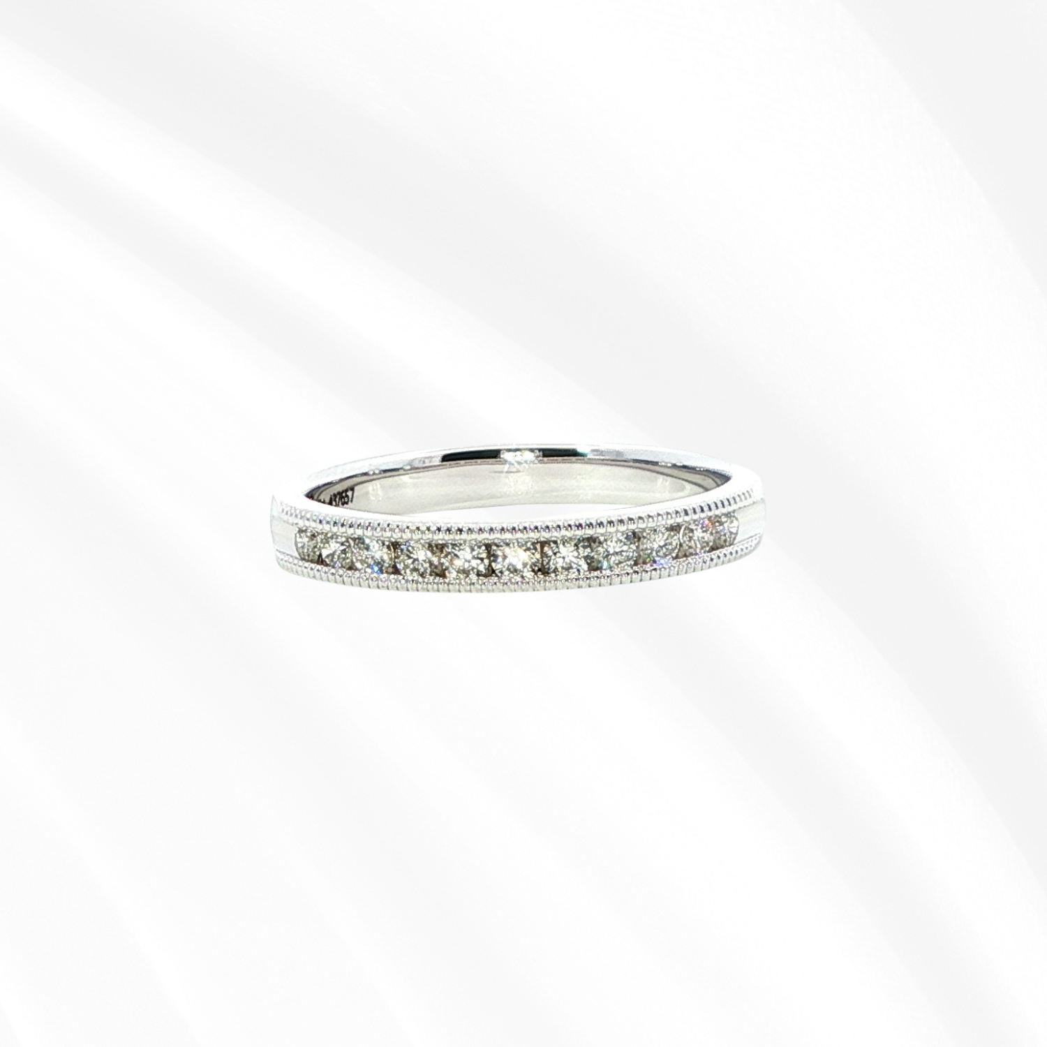 Diamonds set flush between two strips of metal, creating a smooth, continuous line of sparkle with a sleek, secure finish.