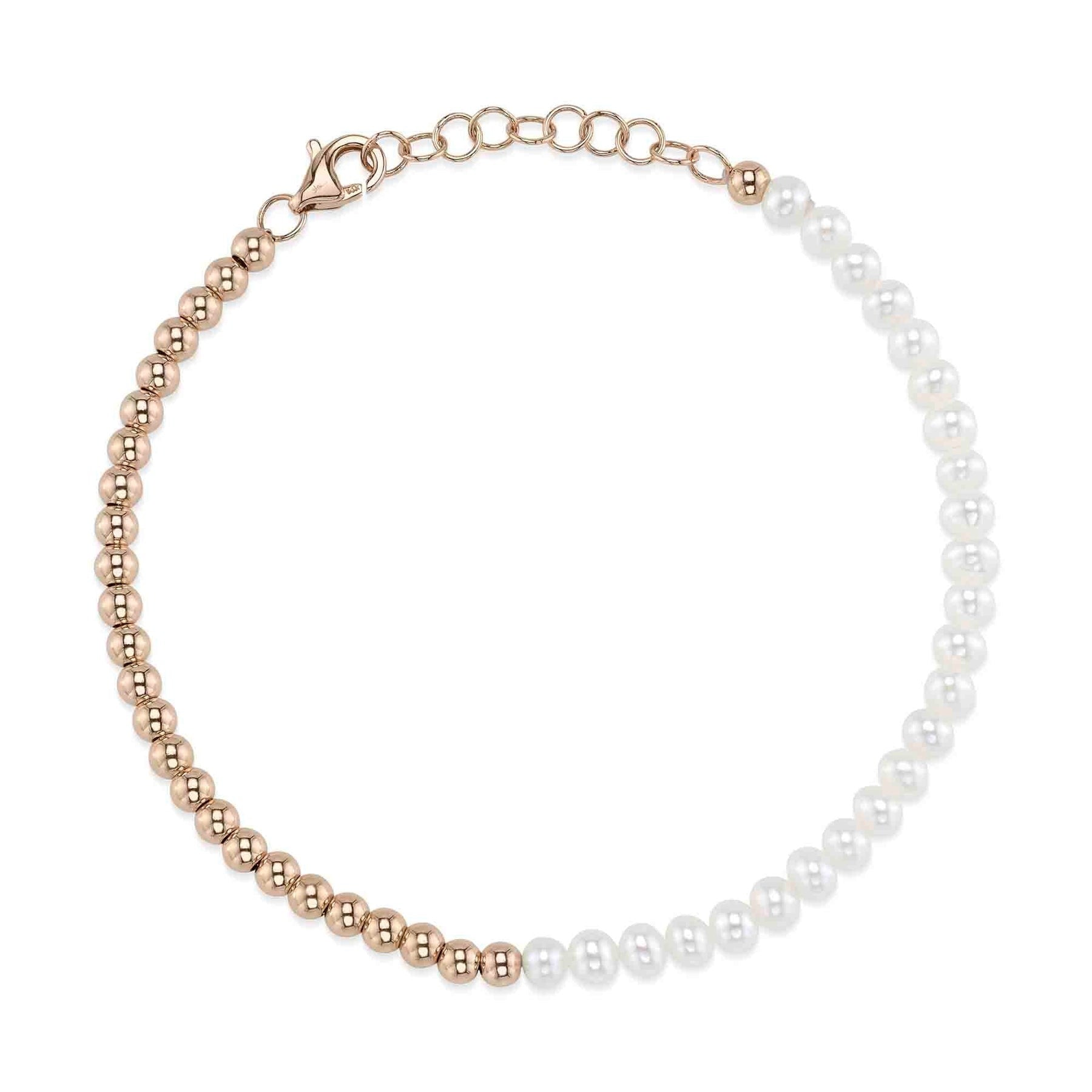 Featuring beautiful white cultured pearls and 14k rose gold balls this bracelet is the perfect combination of classic and modern!