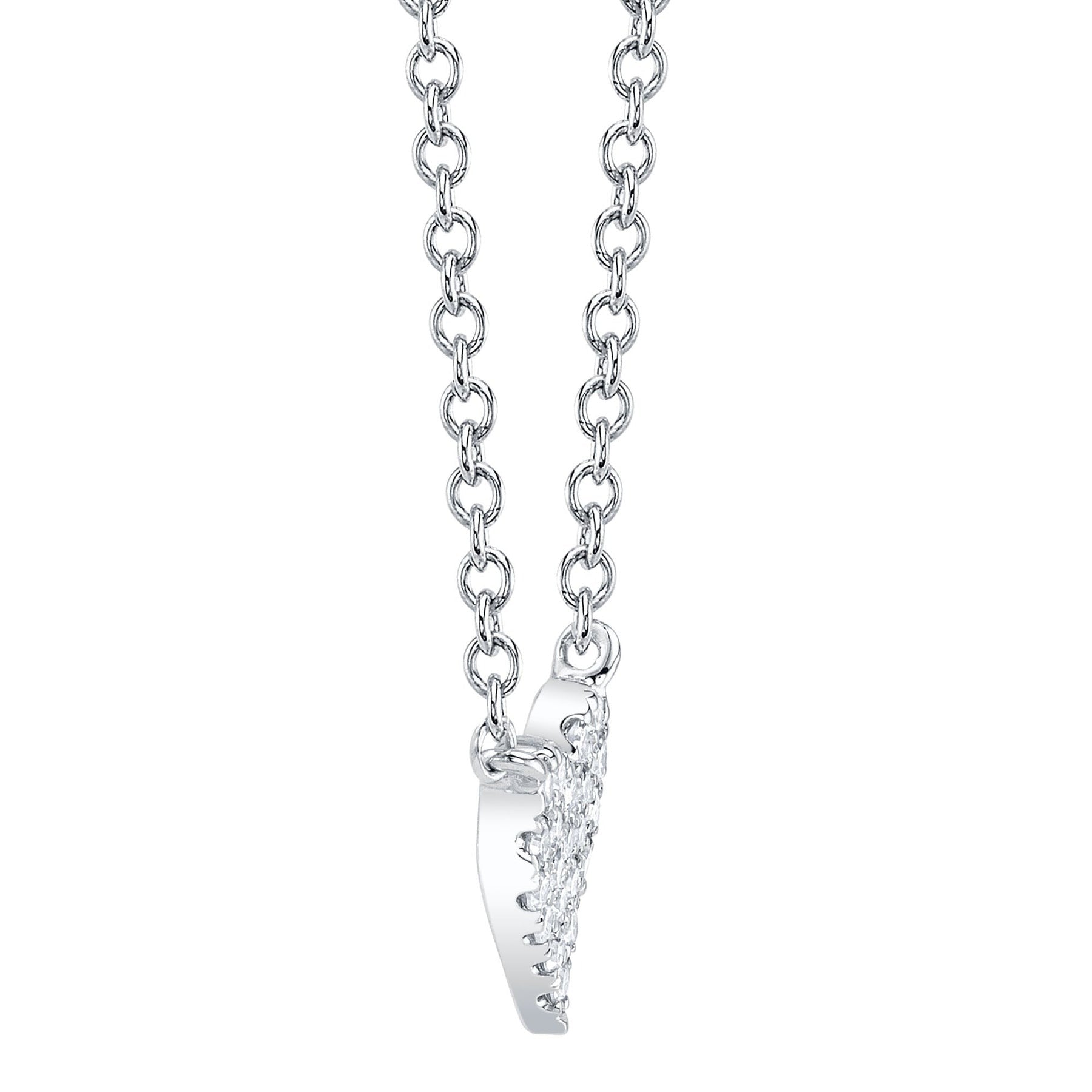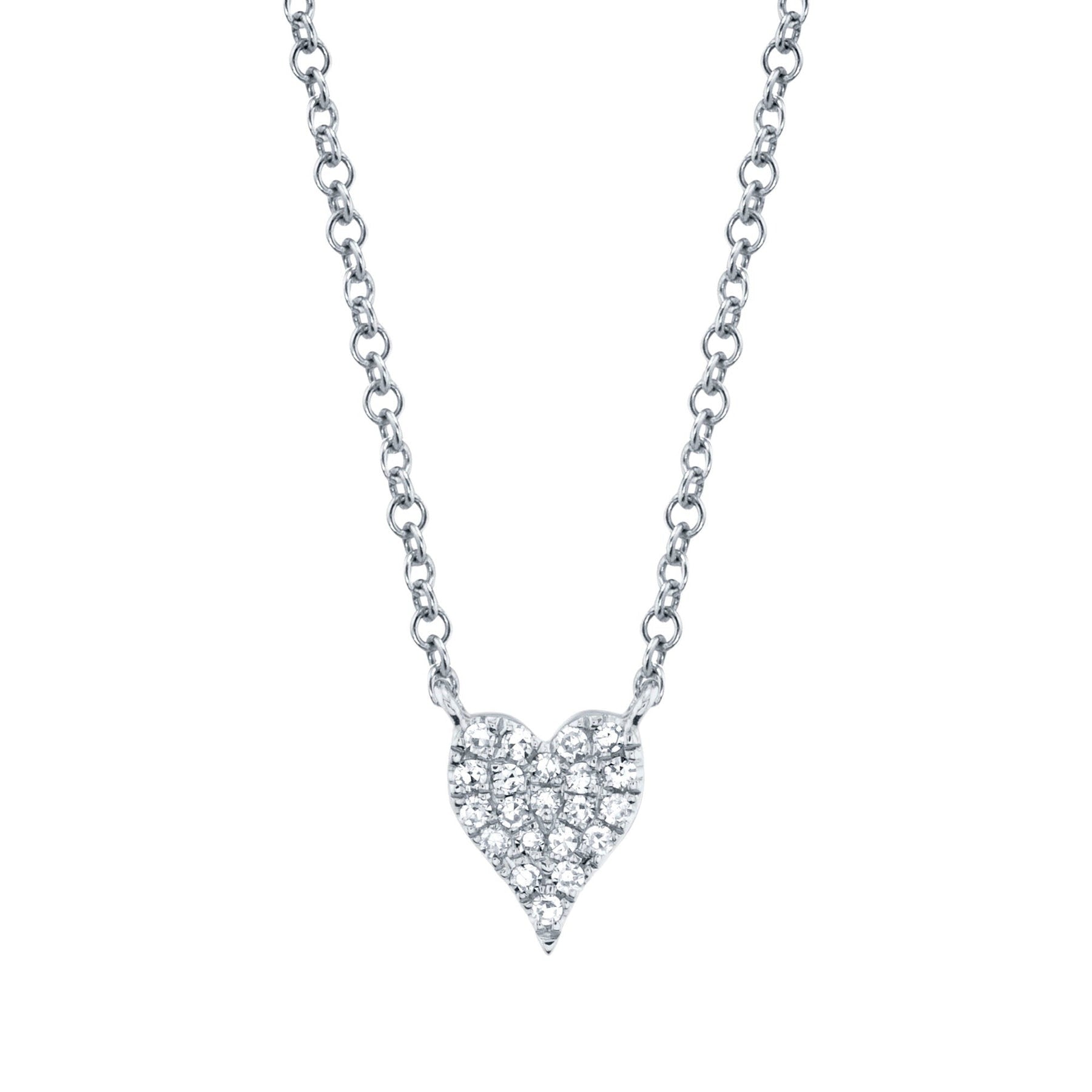 This pavé diamond heart necklace is adorned with shimmering diamonds, creating a timeless symbol of love and elegance in every detail.