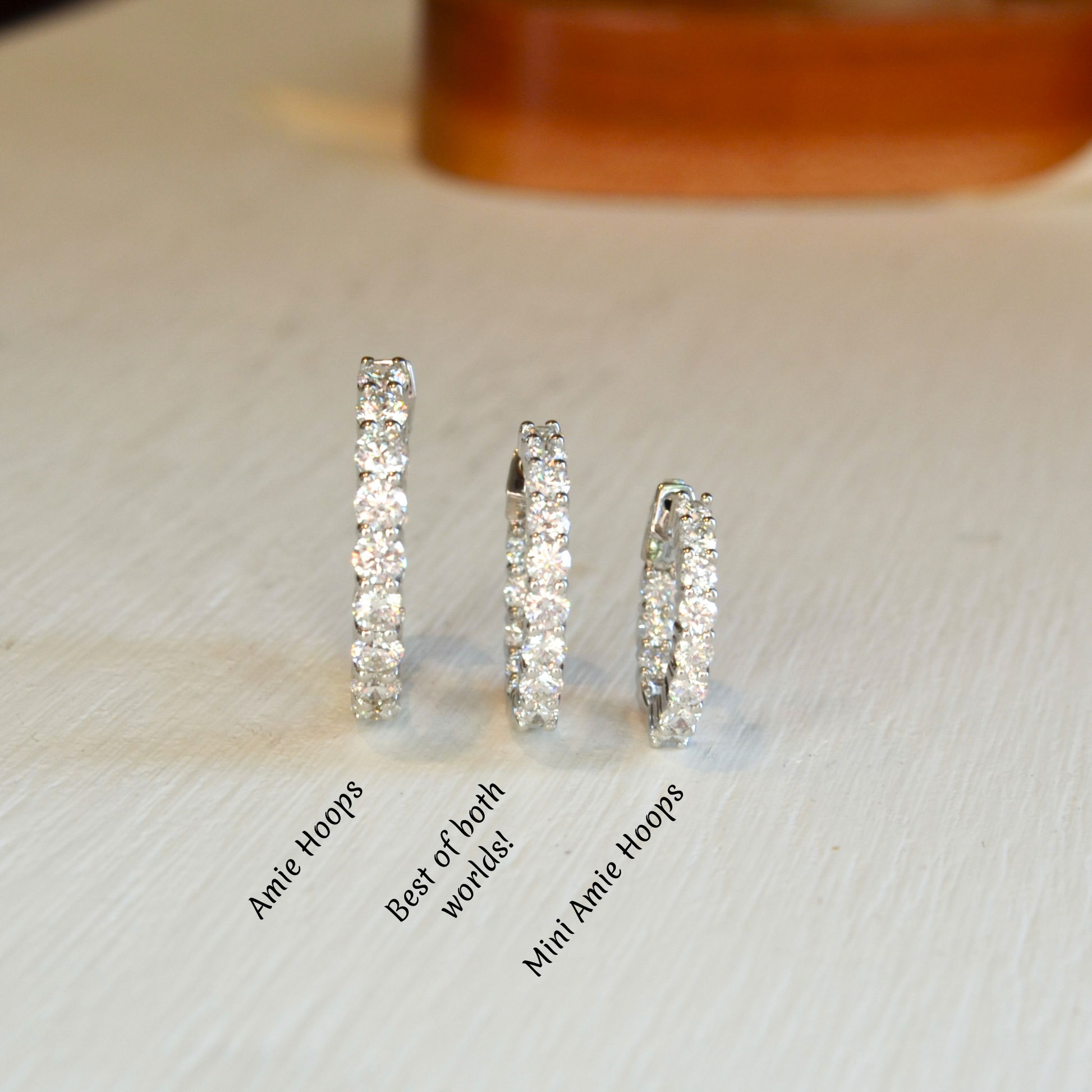 Famously known as the "mini Amie hoops" these hoops offer both the dazzling sparkly diamond look while also a smaller size huggie hoop for comfort! Fashioned with a safe and secure vault lock closure, these hoops will be your next favorite!