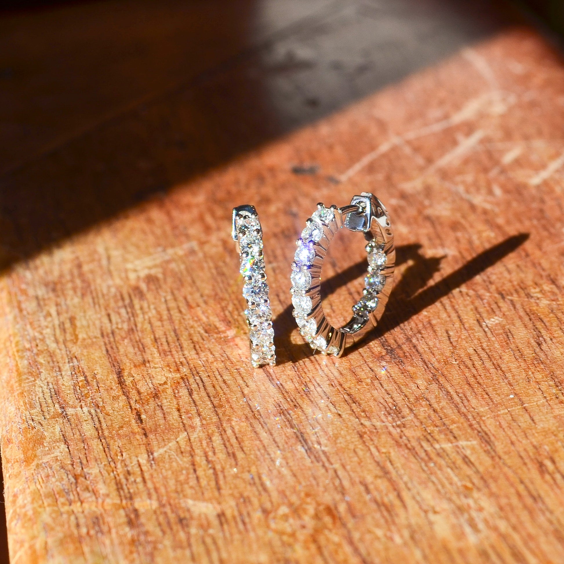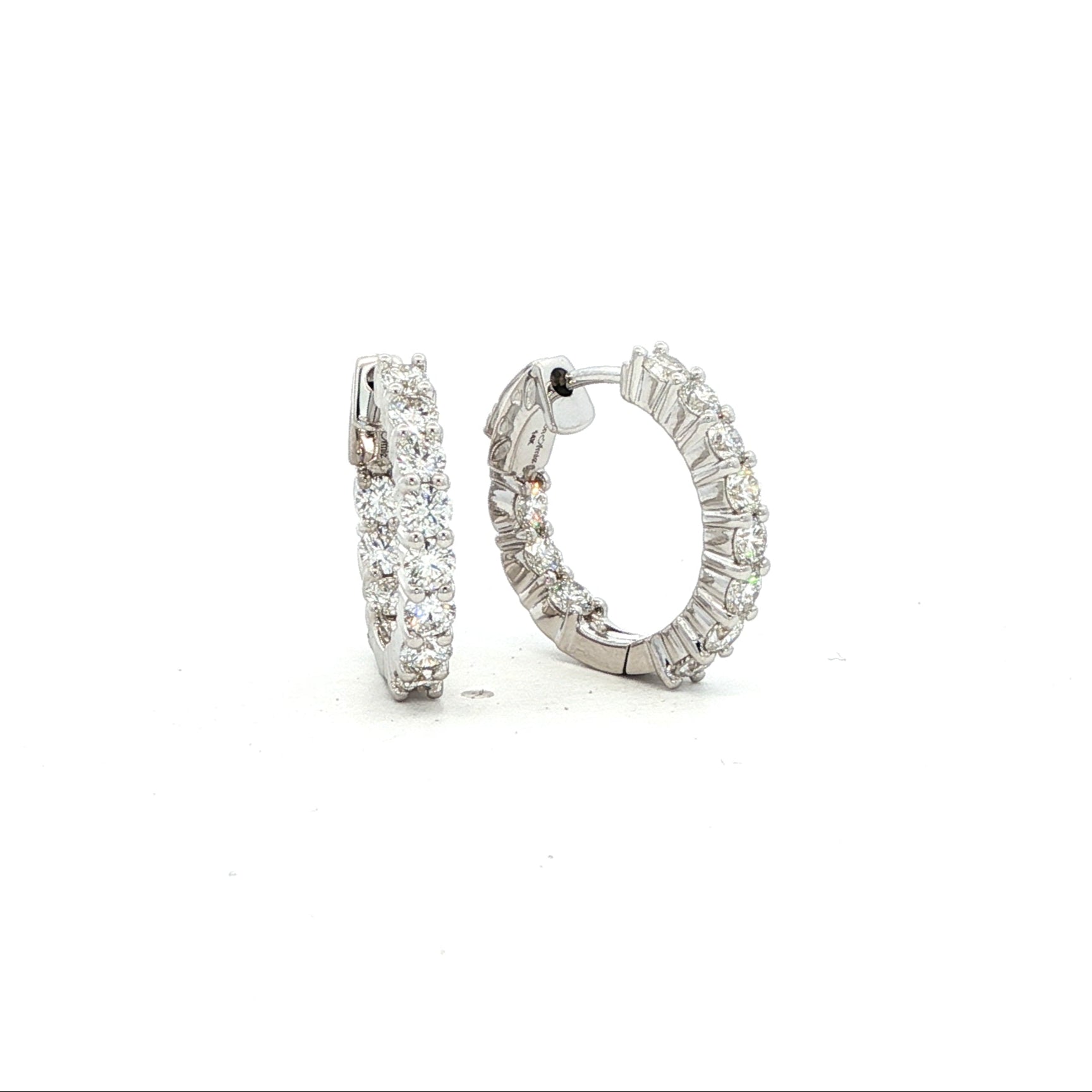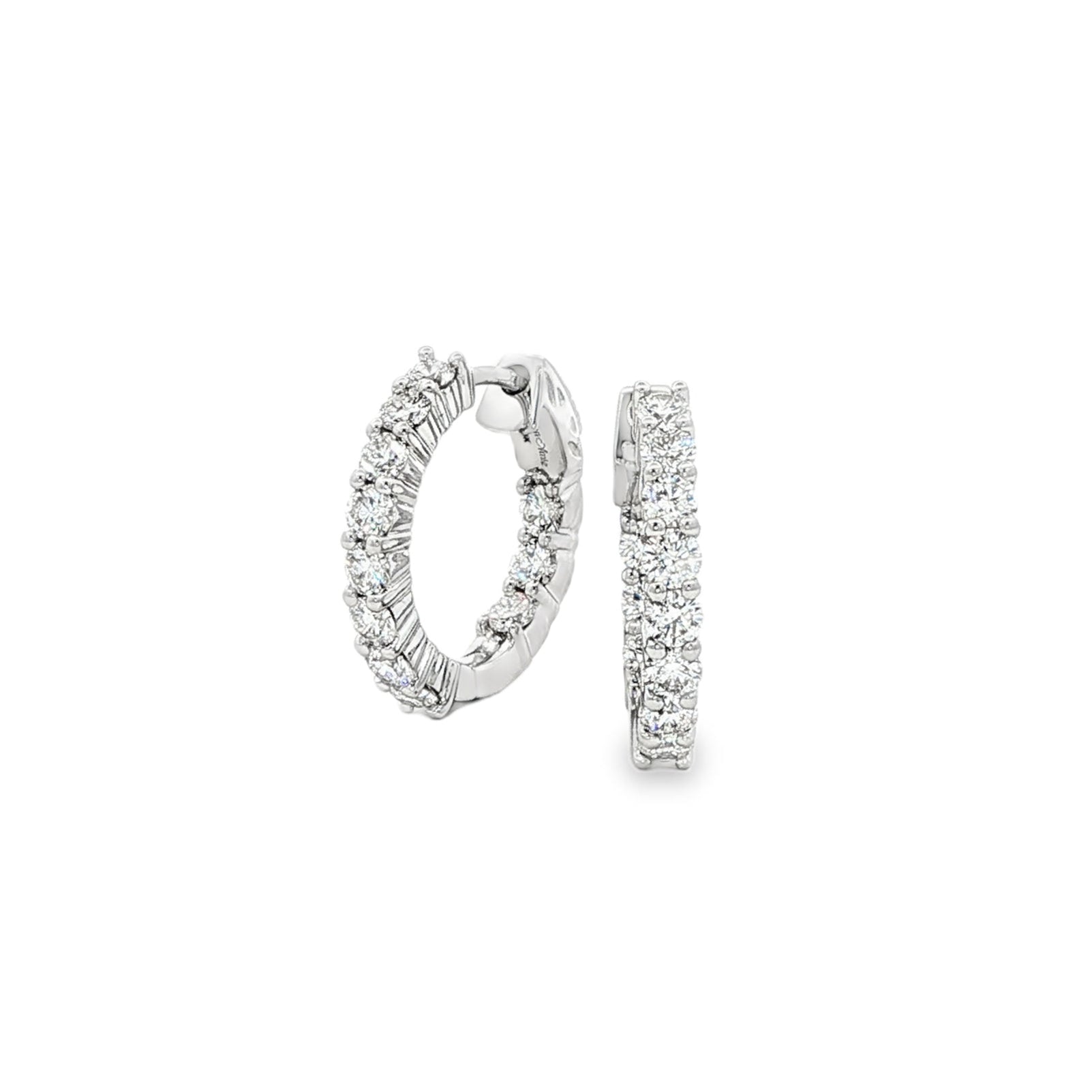 14k White Gold 1.24cttw Inside Outside Diamond Hoop Earring E0045