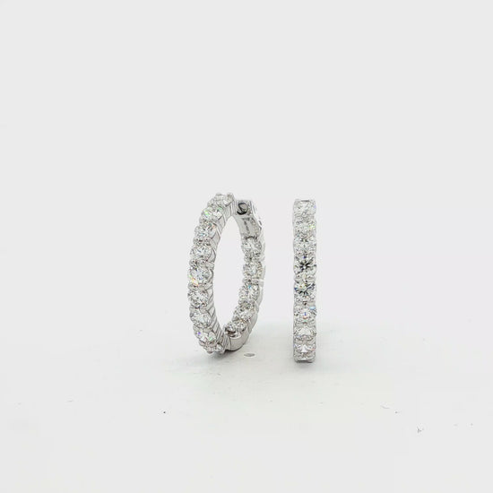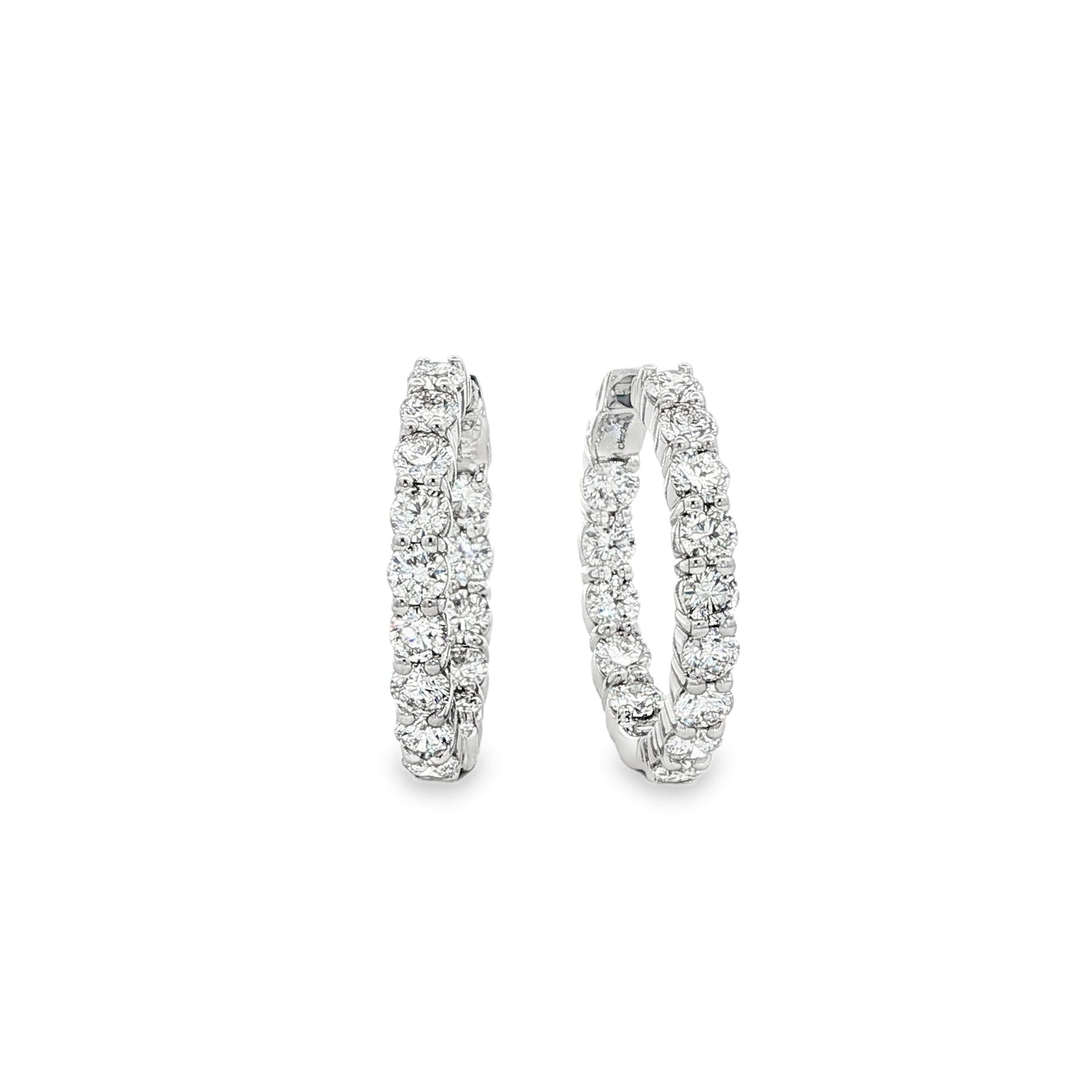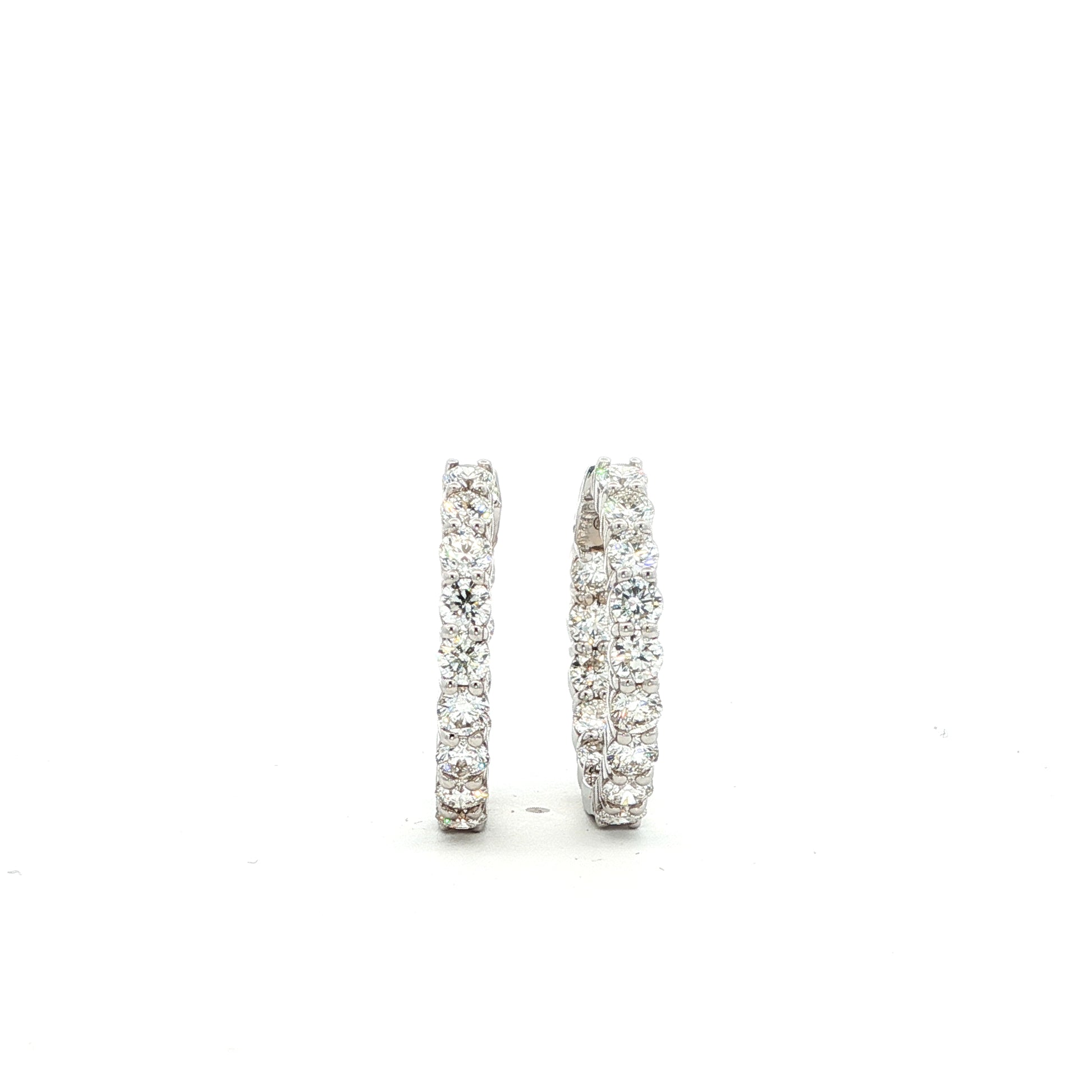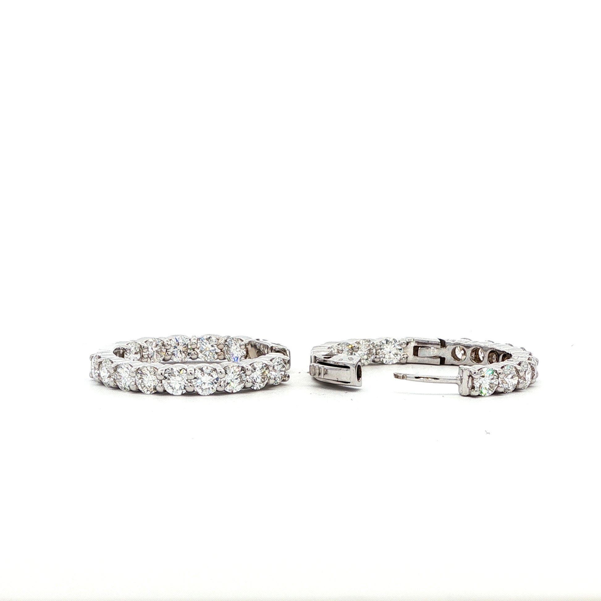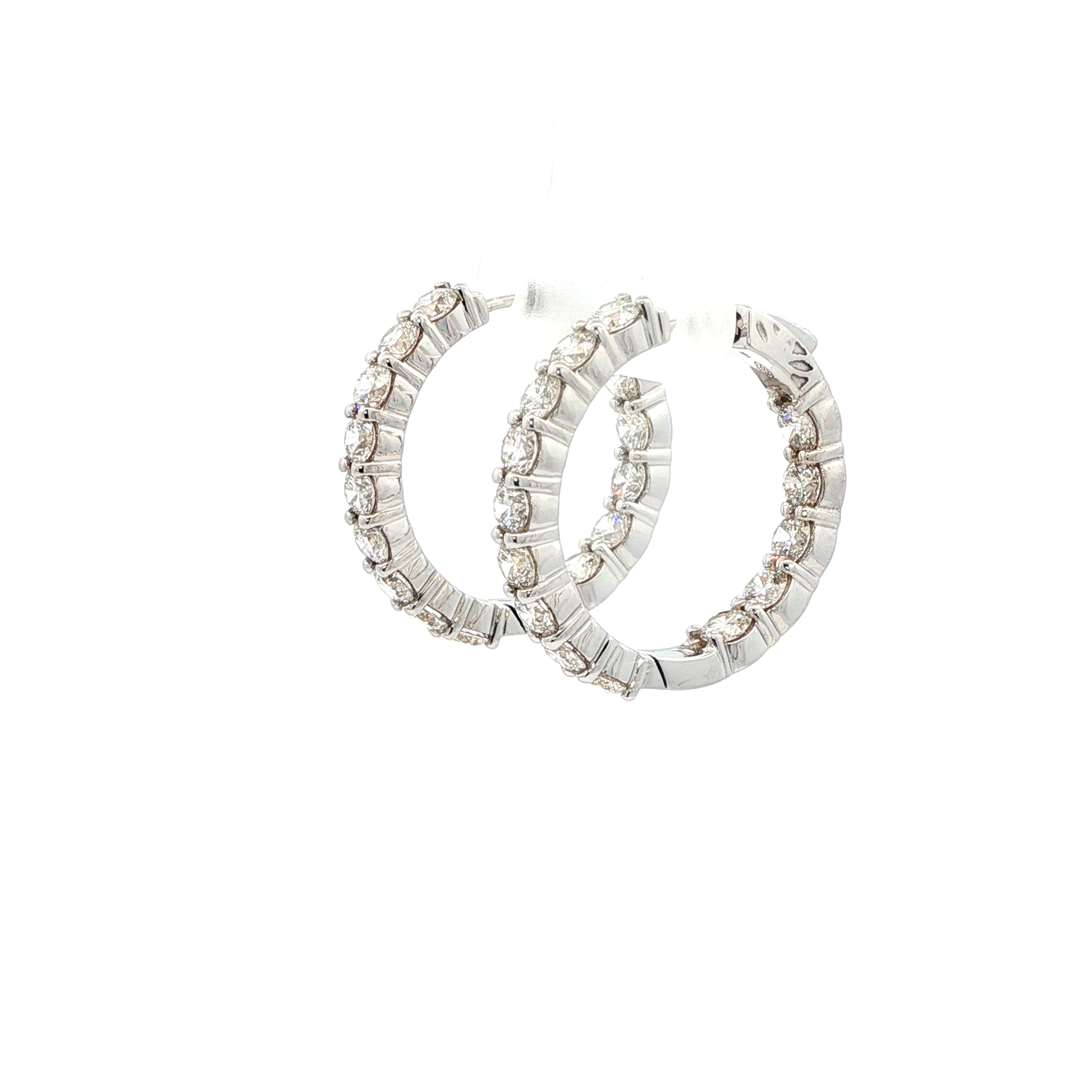 14k White Gold 3.55cttw Inside Outside Diamond Hoop Earring E0052