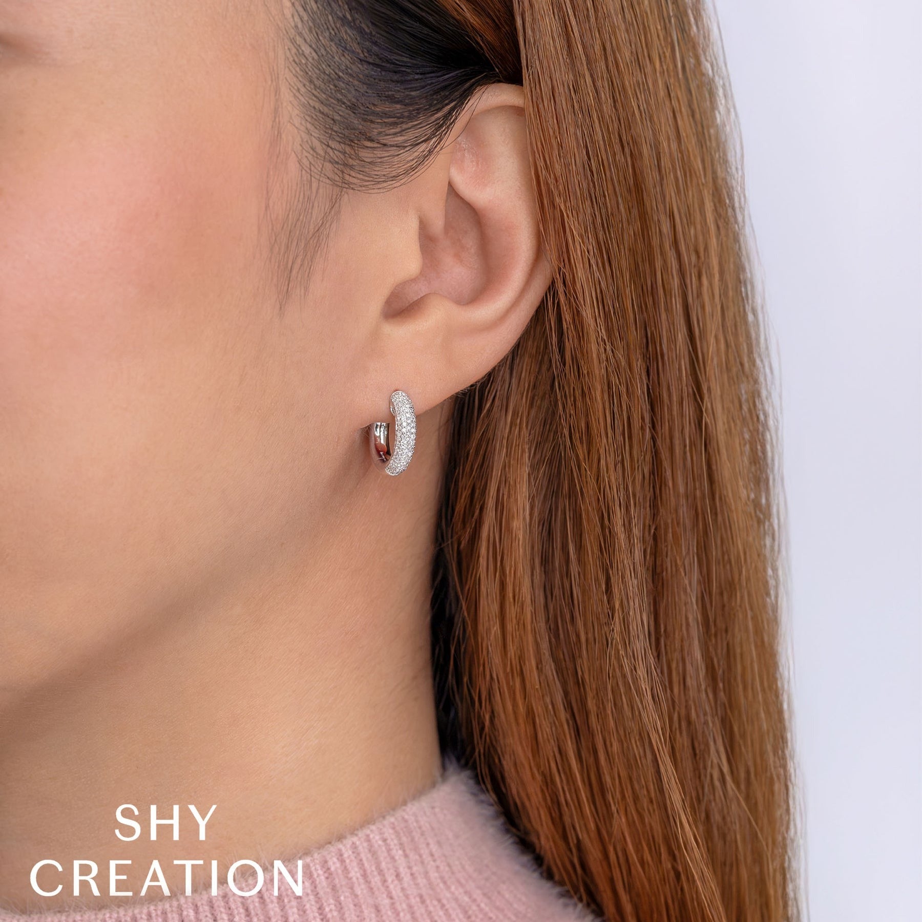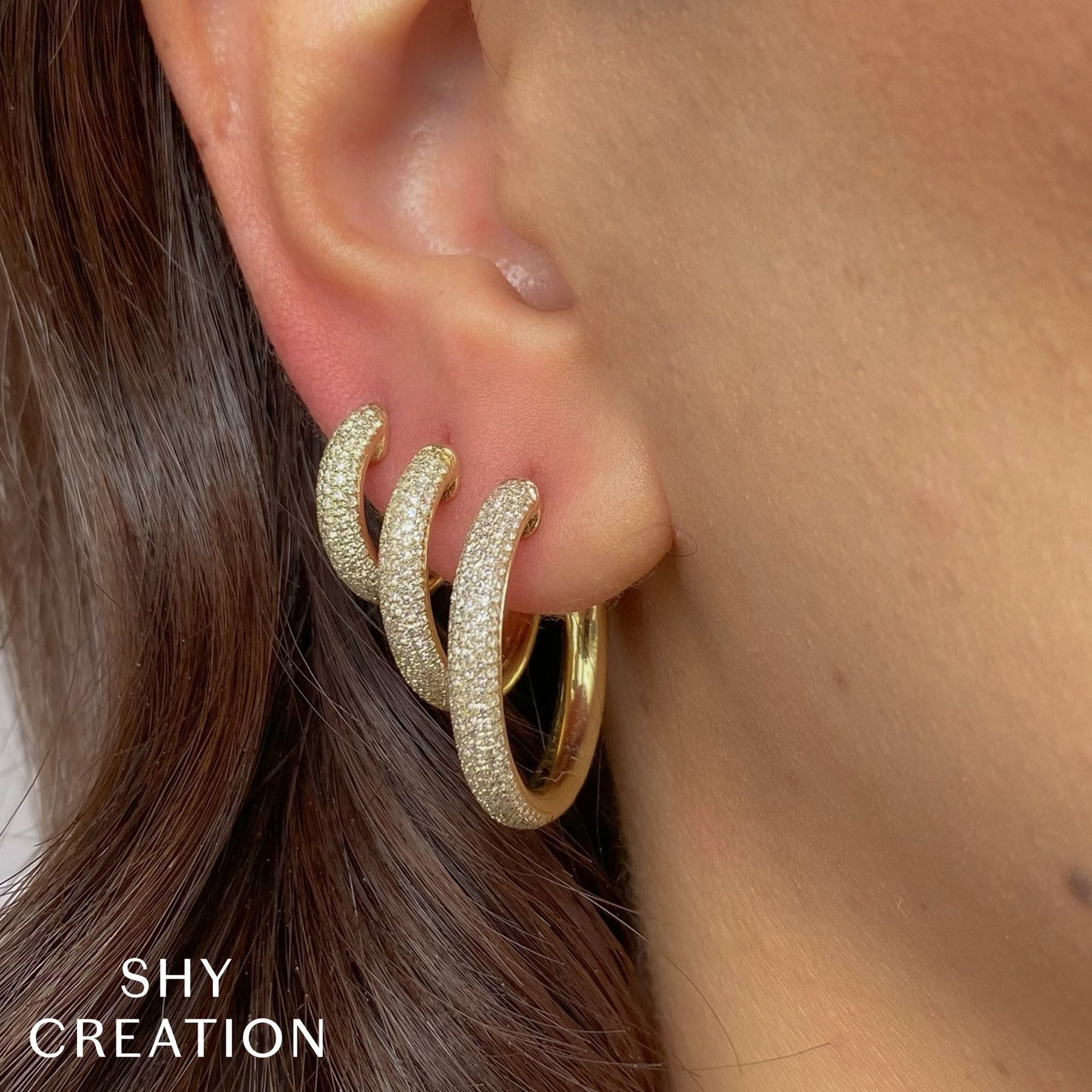 These pavé diamond wide hoop earrings make a statement without saying a word. Covered in shimmering pavé-set diamonds, their bold silhouette adds instant glamour while maintaining a sleek, modern edge. Perfect for elevating everyday looks or finishing off a night-out ensemble.