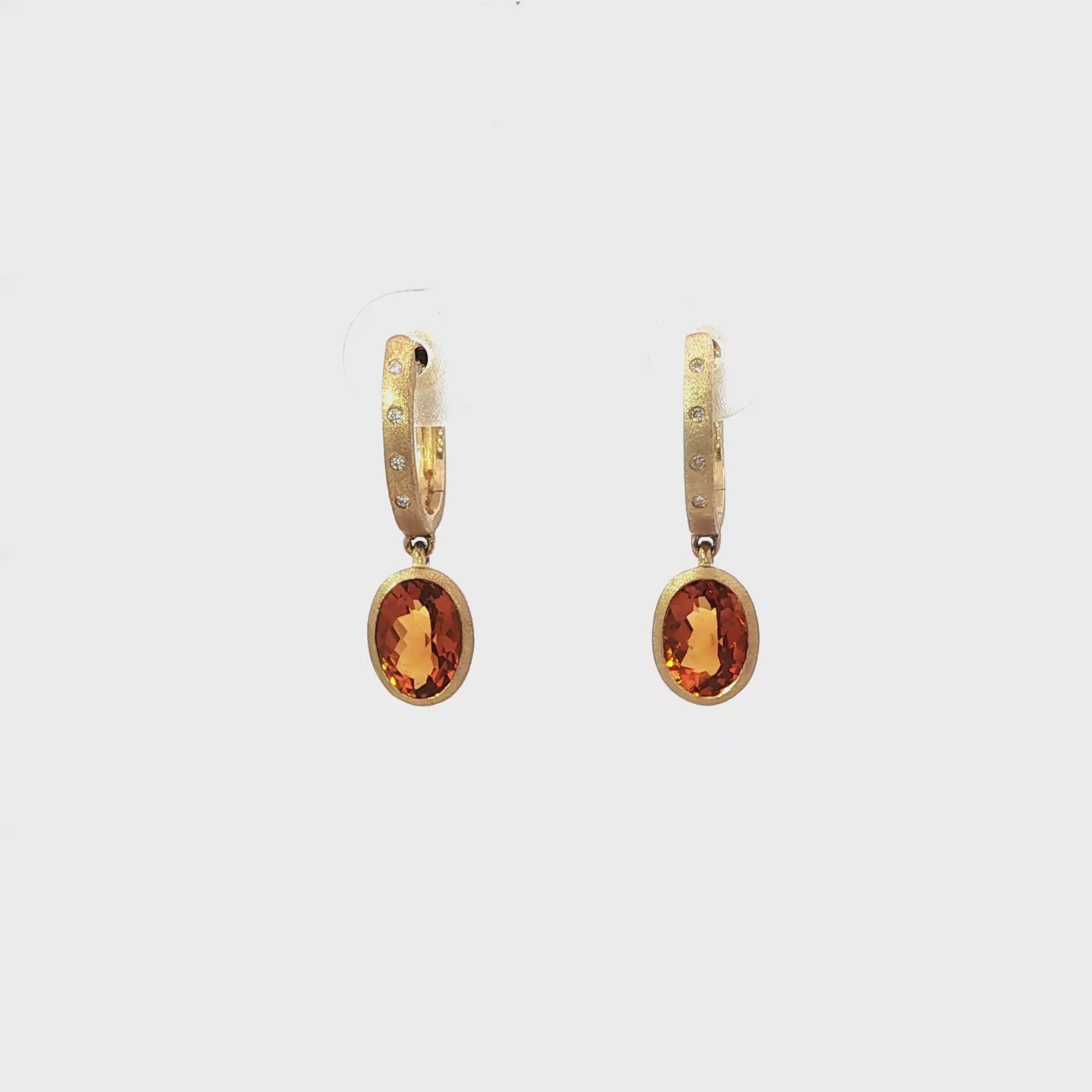 (2) oval citrine bezel set, (8) round diamonds flush set in hoop, G-H SI1