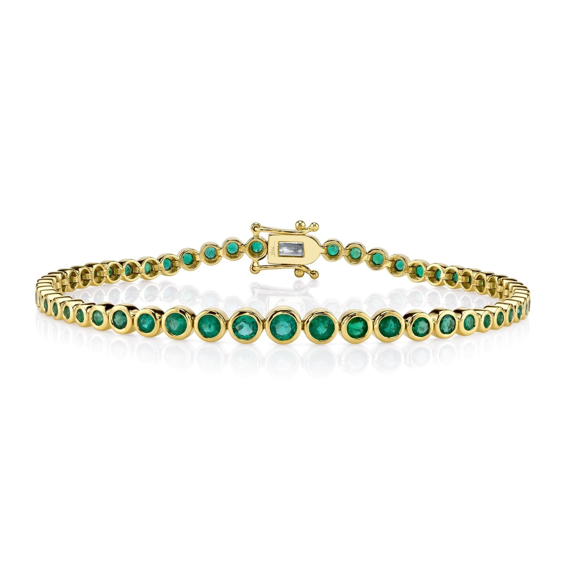 14k Yellow Gold 2.07ct Bezel Set Emerald Tennis Bracelet SC41002296