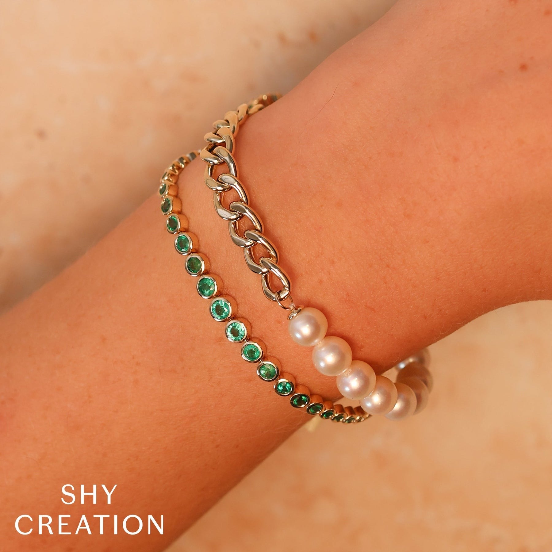 - Secure box clasp and two safety clasps on the profile of the bracelet