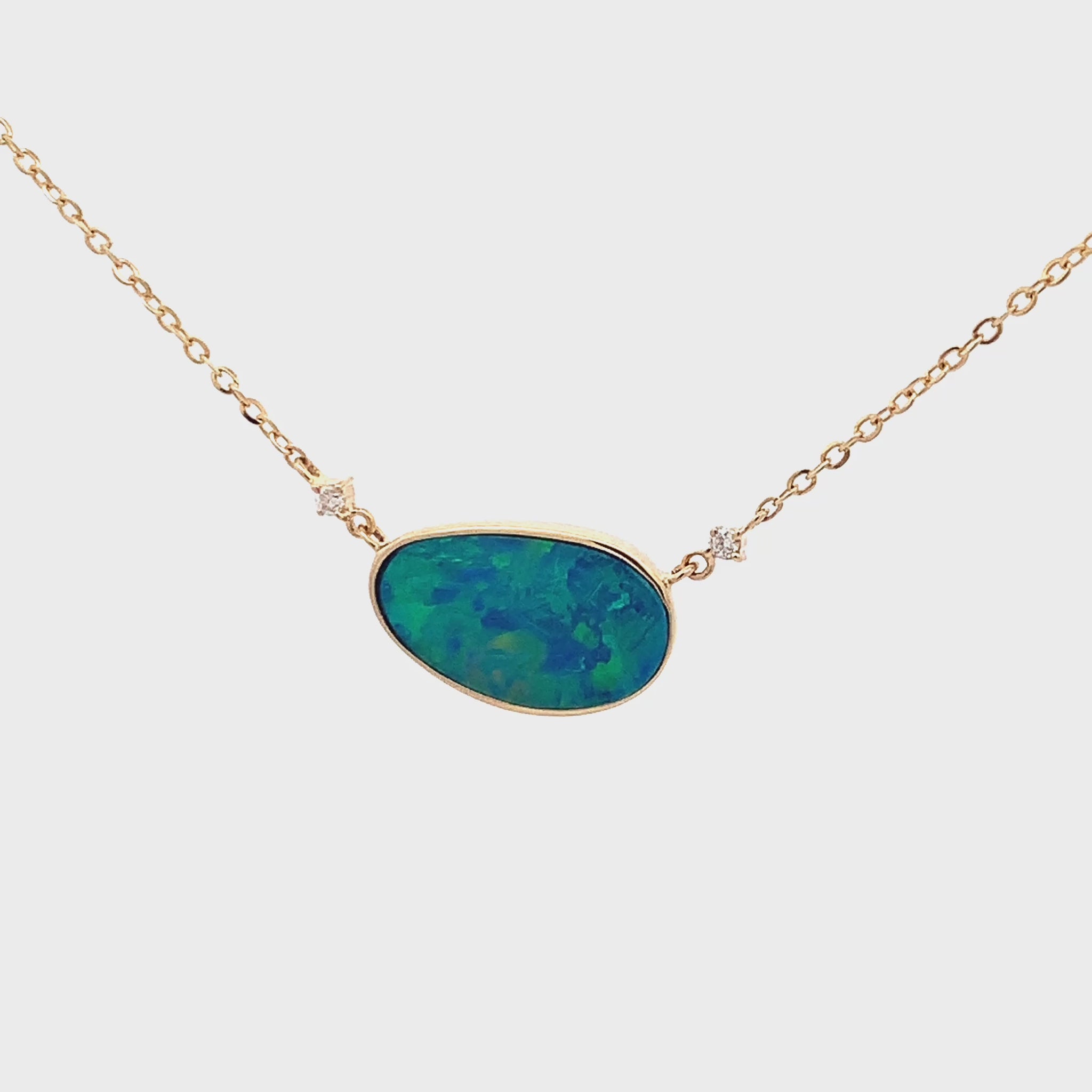 14kY 3.16ct Opal .03cttw Diamond Necklace TXNFX03DNOP