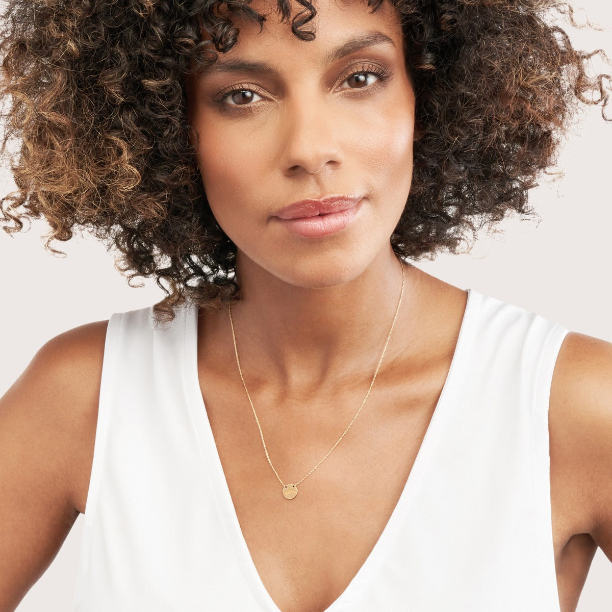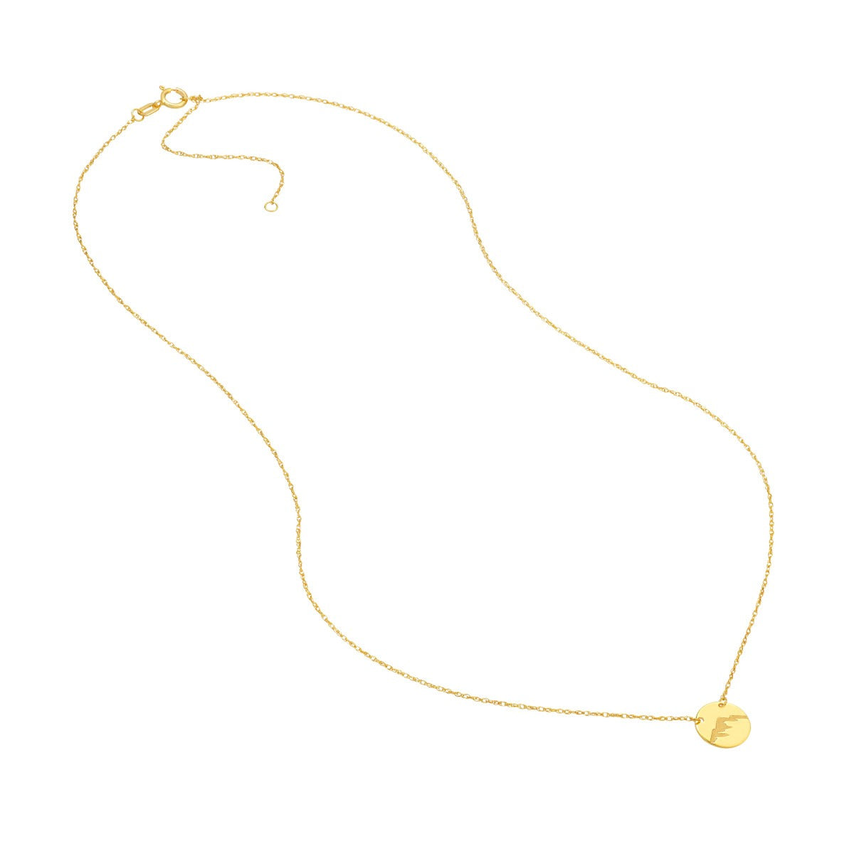 This necklace makes a subtle statement for the person who loves to travel. This 14K yellow gold 9mm disc necklace with an engraved mountain is sure to bring out the adventurer in you.