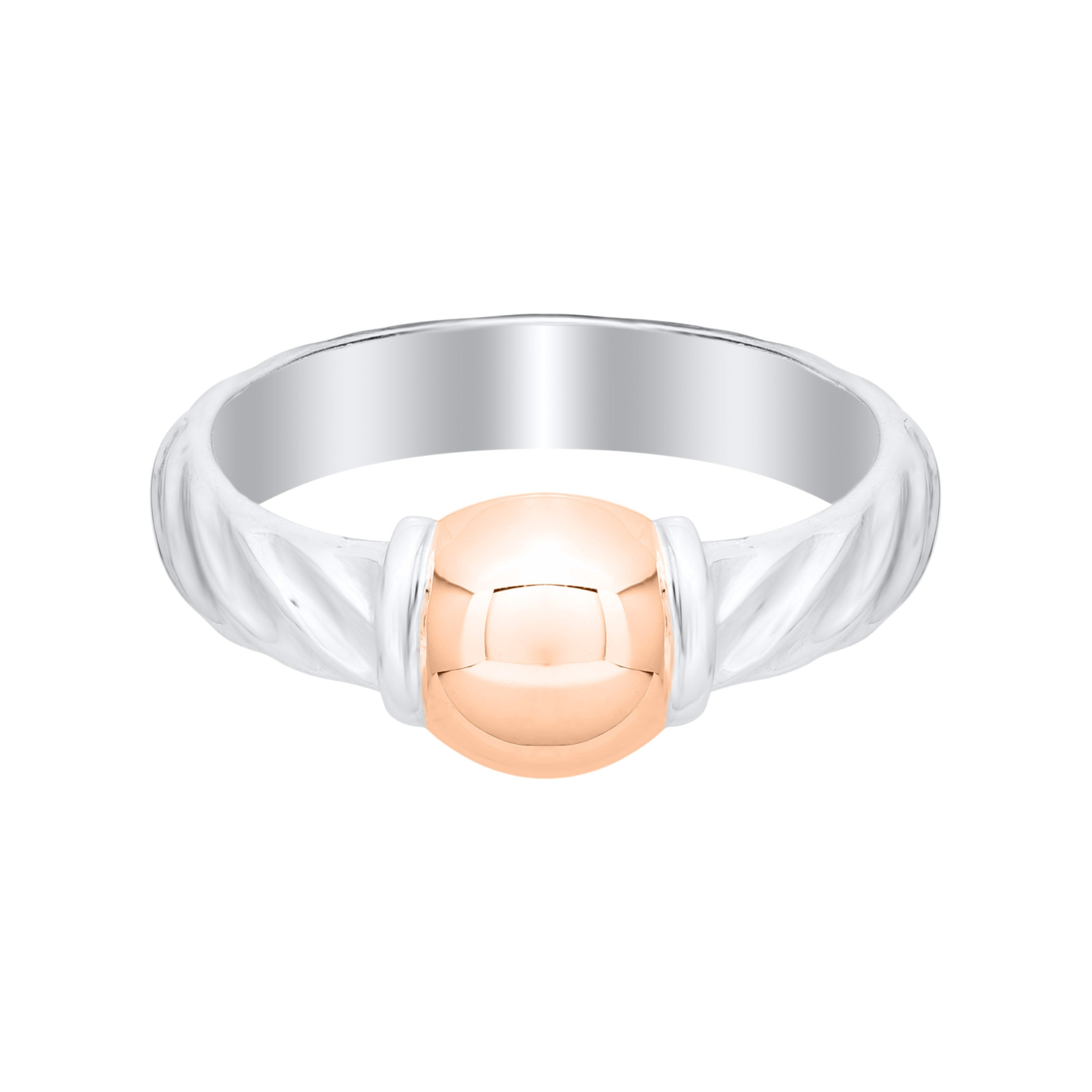 Sterling Silver and 14k Rose Gold Twist Wire Bead Ring RF5501-7