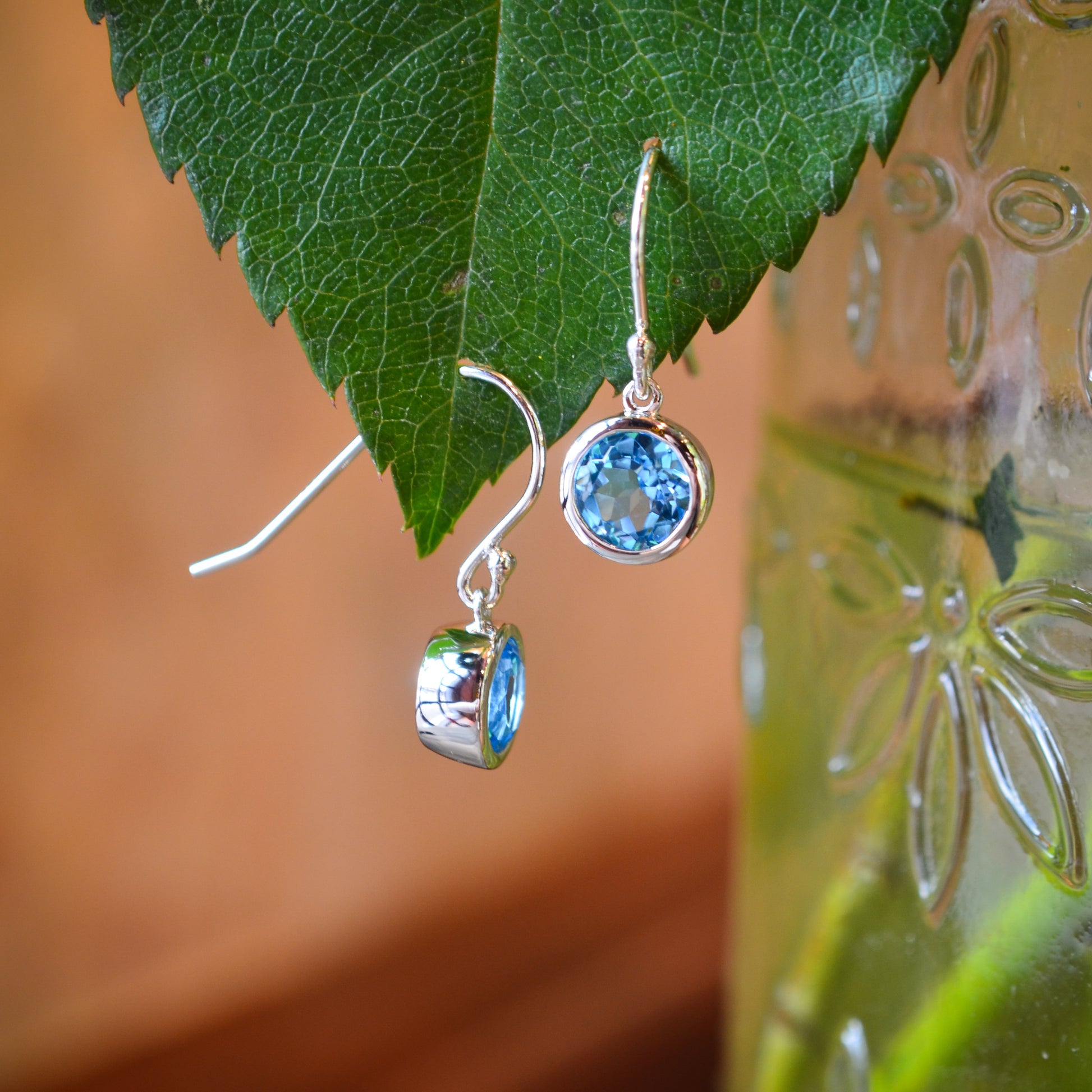 Sterling Silver 6mm Bezel Set Blue Topaz Dangle Earring
