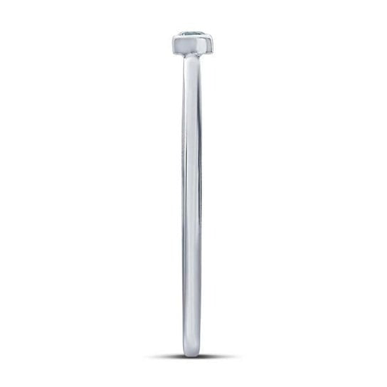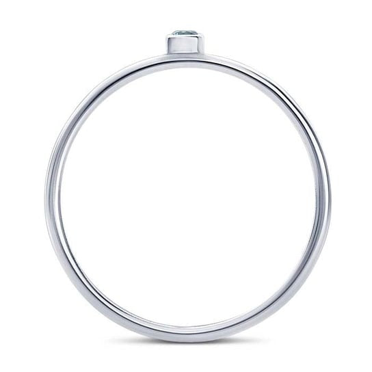 This sterling silver ring features one 2mm round swiss blue CZ in a bezel setting. A cute, dainty, stackable ring with a pop of color!